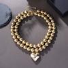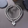 Exaggerated two-piece set, multi-layer round bead stacked necklace, CCB peach heart pendant, neck chain, Cyberwind necklace.