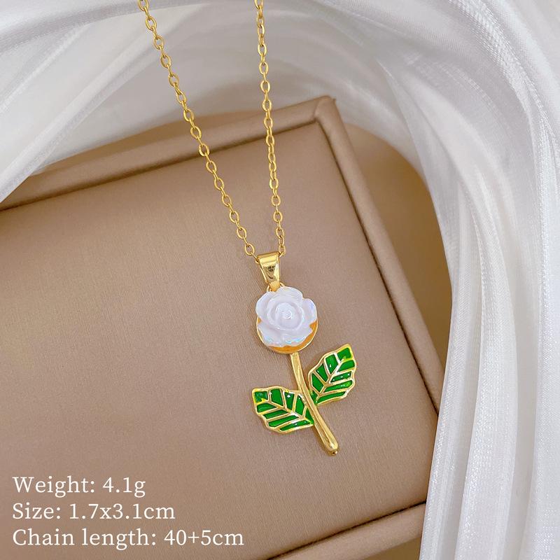Titanium Steel Oil Dripping Flower Fashion Light Luxury Temperament Gorgeous Full Diamond Necklace Female Versatile Collarbone Chain