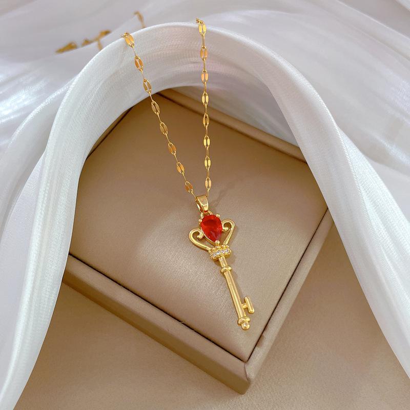 Light Luxury Temperament Gorgeous Full Diamond Crown Key Necklace Women'S Versatile Collarbone Chain Titanium Steel Chain