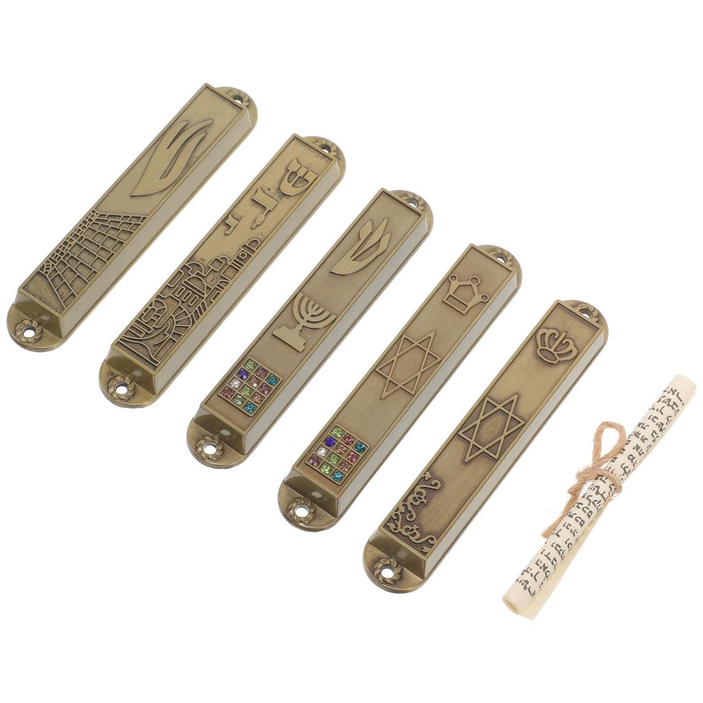 5 Piezas Mezuzá Metal Sagrado Símbolos Judaicos Placa de Bendición Decoración del Hogar Adorno Manualidad de Pared Artículo Religioso Cortina Je
