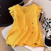 Camisas de punto blanco para mujer, camisa informal de manga media con cuello en V de algodón y lino, primavera y otoño