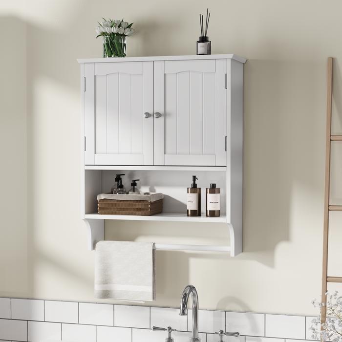 Armoire de toilette - MUVOE - Blanche - 2 étagères réglables - Porte-serviettes mural - MDF durable