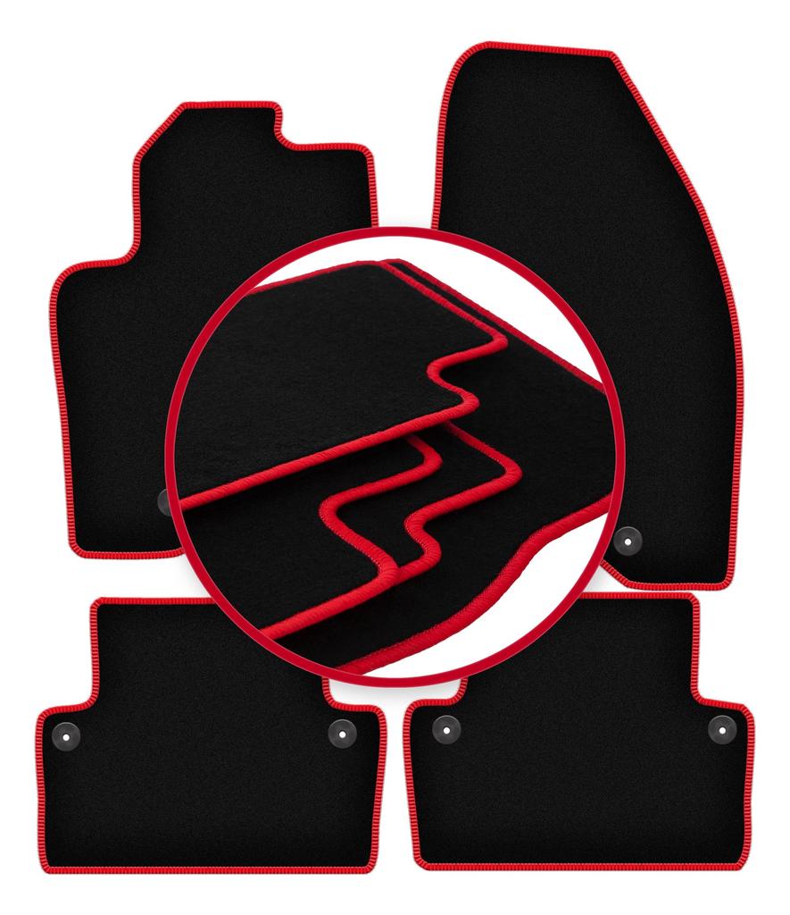 Alfombrillas de terciopelo con borde rojo para: Familiar Volvo V70 II (2000-2007)