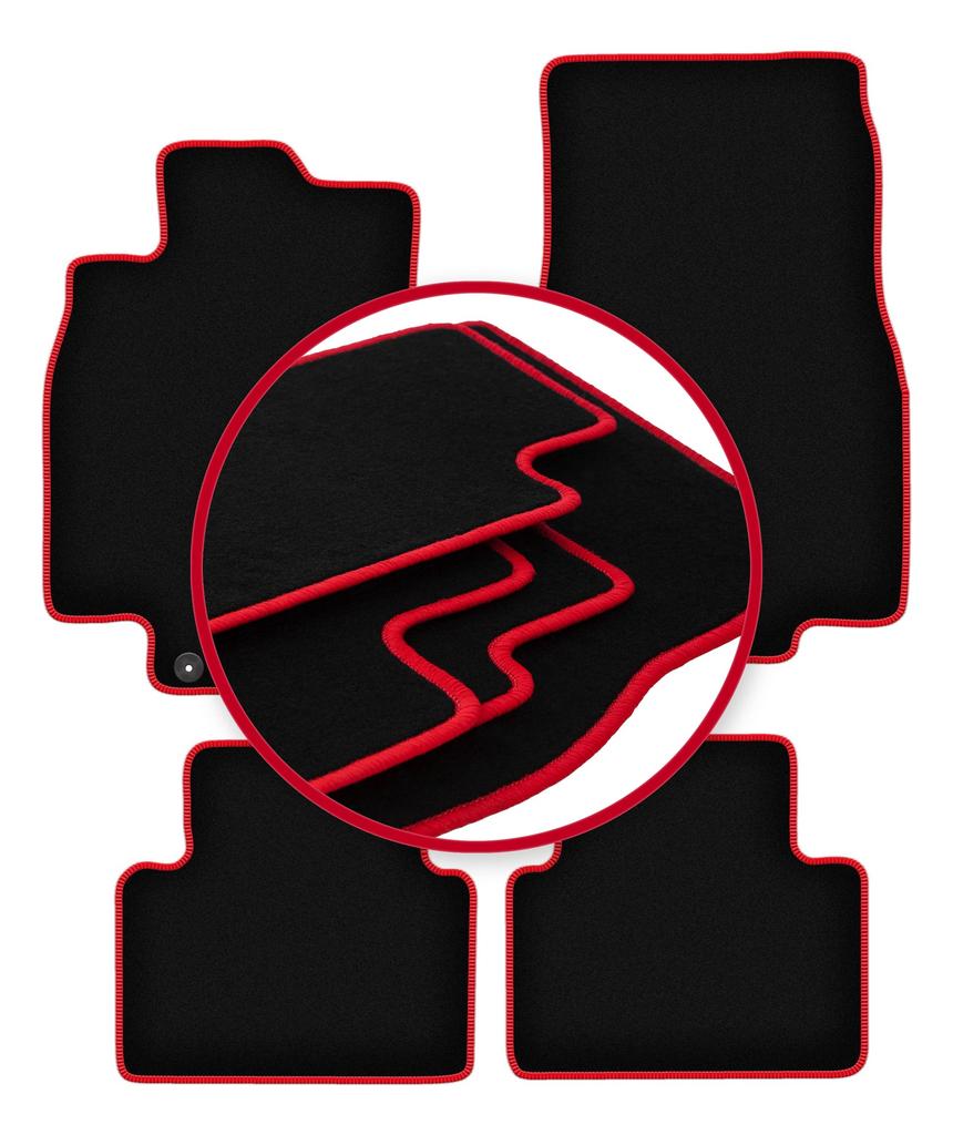 Alfombrillas de terciopelo con borde rojo para: Mercedes Clase A W169 hatchback (2004-2012)