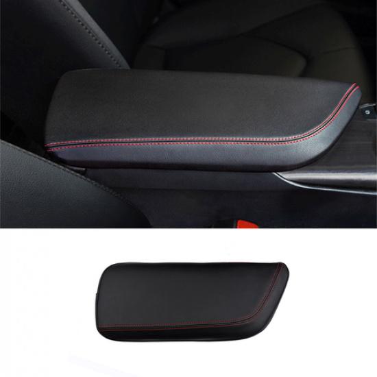 Black Leather w/ Red Line Central Armrest Box Case Cover For Toyota Camry 18-22