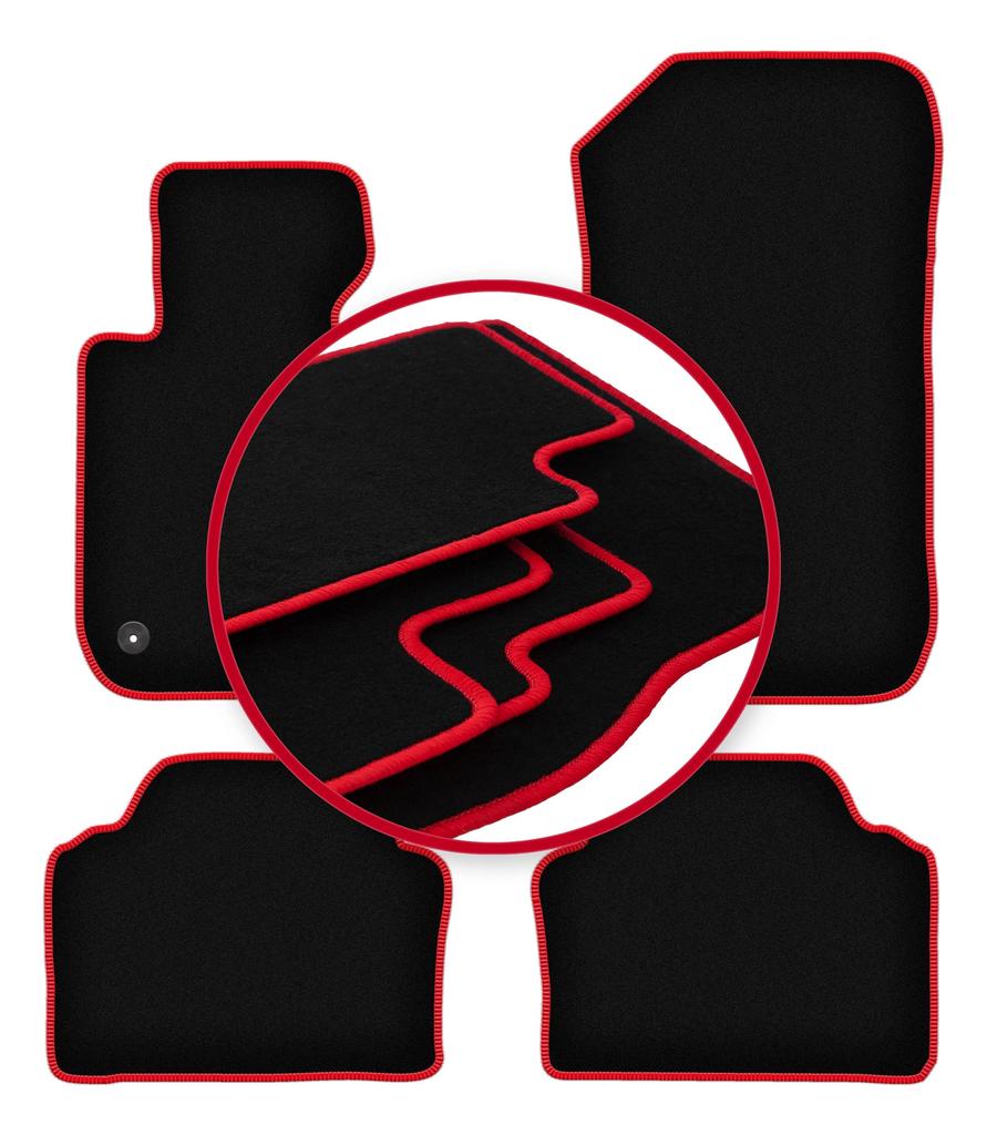 Alfombrillas de terciopelo con borde rojo para: BMW Serie 3 E91 xDrive familiar, touring (2004-2011)
