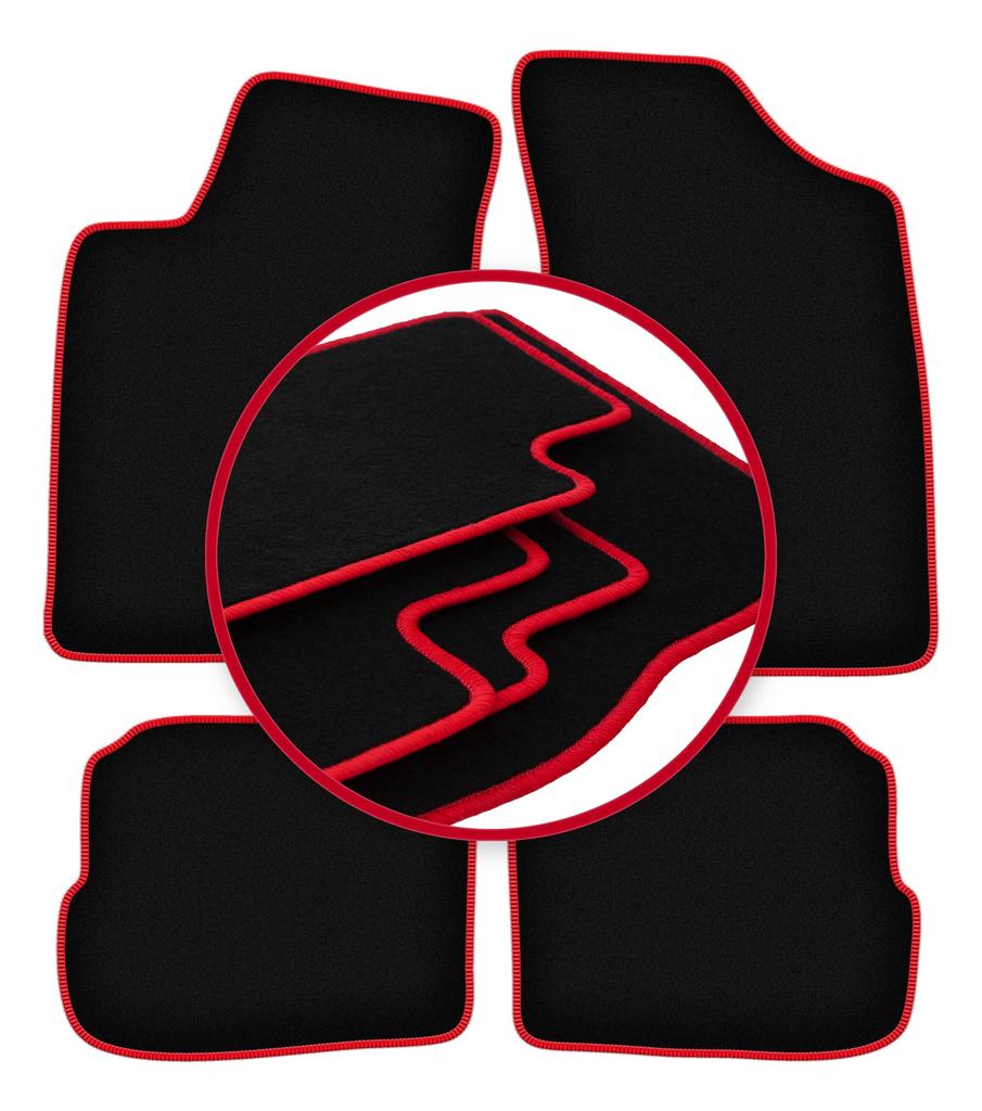 Alfombrillas de terciopelo con borde rojo para: Volkswagen Passat B3 familiar, sedán (1988-1993)