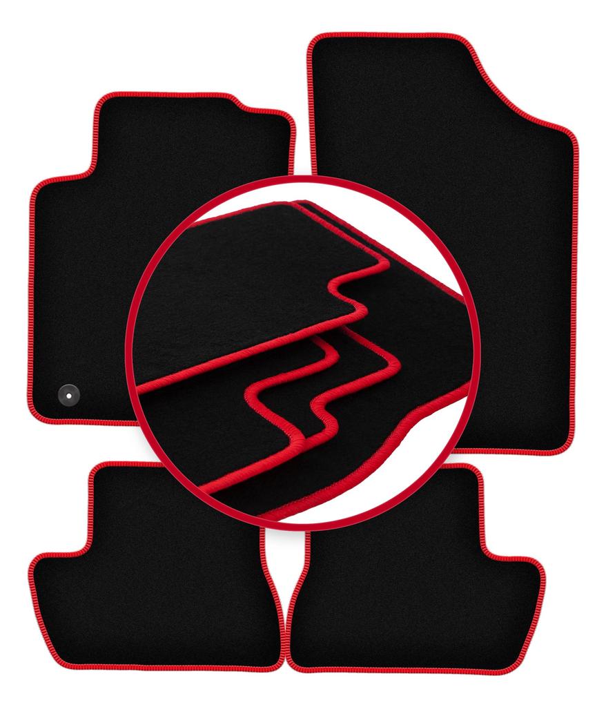 Velour floor mats with red edge for: Citroen C2 hatchback (2003-2009)