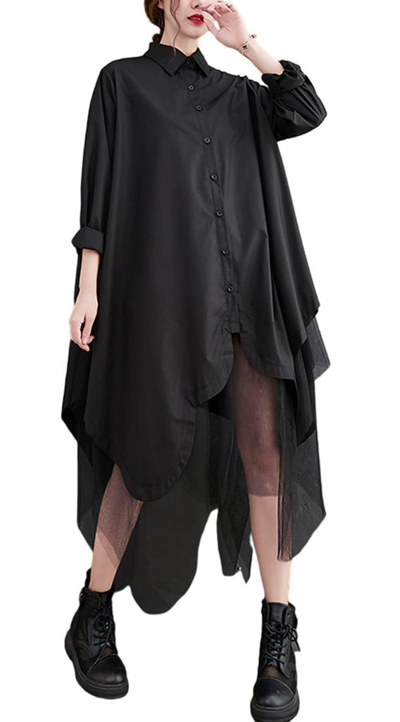 BEIBANG Shirt Long Layered Tulle Long Plus Slimming Women's Dress, Sleeve, Casual, Look, Skirt, Tunic, Sizes, Flattering, (Free Size, Black)