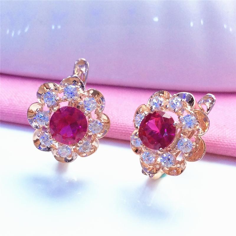 Purple Gold Plated Rose Gold Flower Egg Surface Redstone Earrings Light Luxury Temperament Design Colored Gold Women'S Earrings