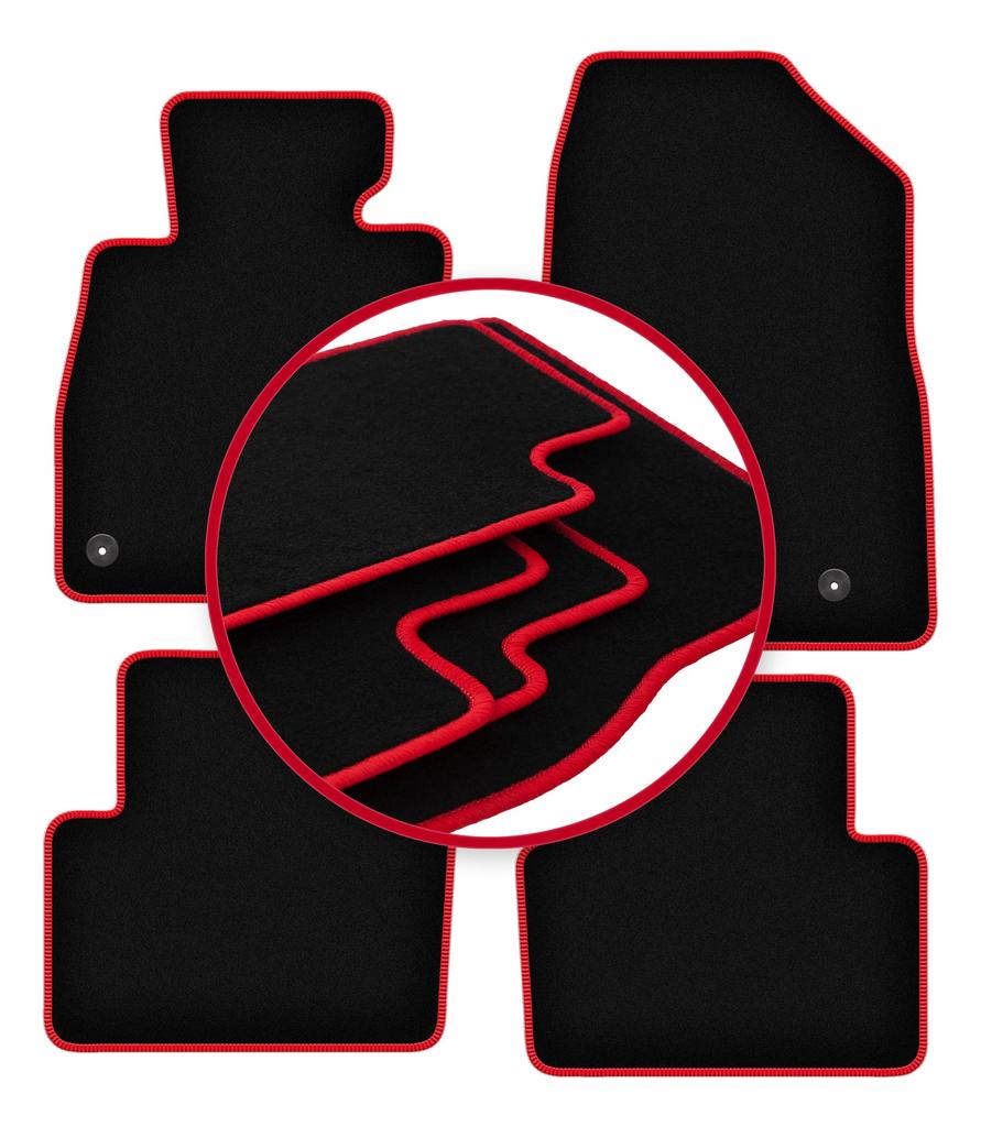 Velour floor mats with red edge for: Mazda 3 III (BM) hatchback, sedan (2013-)