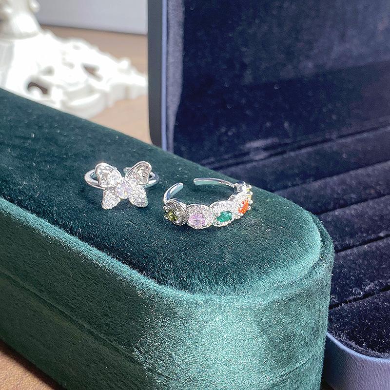 [Butterfly Diamond Qicai] Dopamine Contrasting Color Diamond Zircon Butterfly Opening Ring Super Flash Light Luxury Advanced Sense Ring
