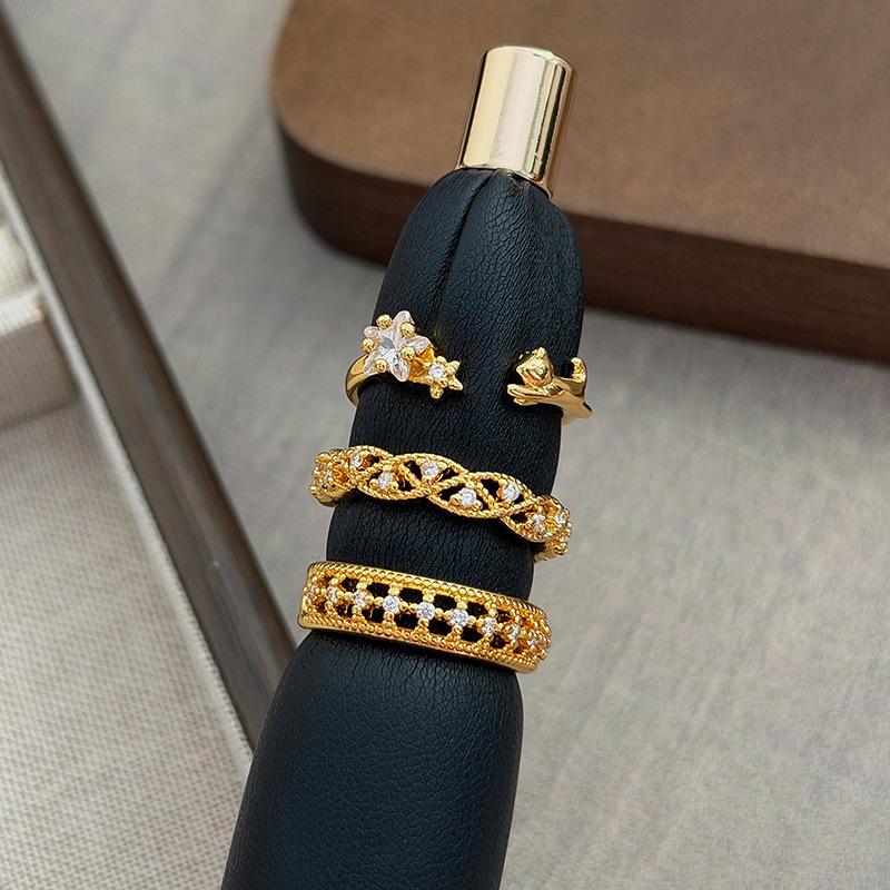 Medieval Light Luxury Diamond-Encrusted Zircon Cat Weave Pattern Hollowed Out Full Diamond Opening Ring Niche Stacked High-End Ring