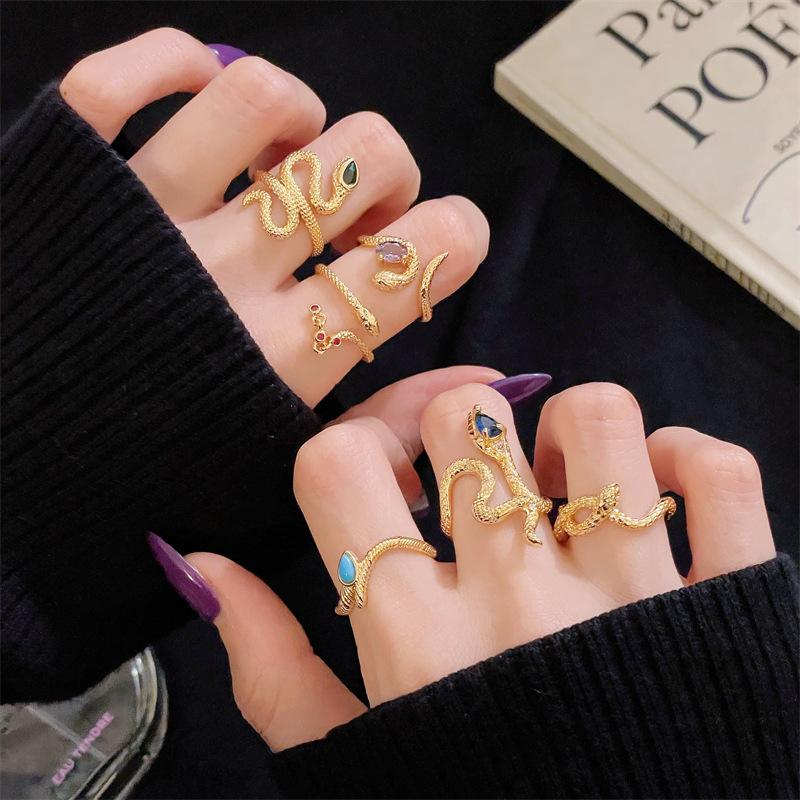 Year Of The Snake, Snake-Shaped Gold Open Ring, Personalized Retro Diamond-Set, Medium And Ancient Style, High-End Sense, Light Luxury, Niche