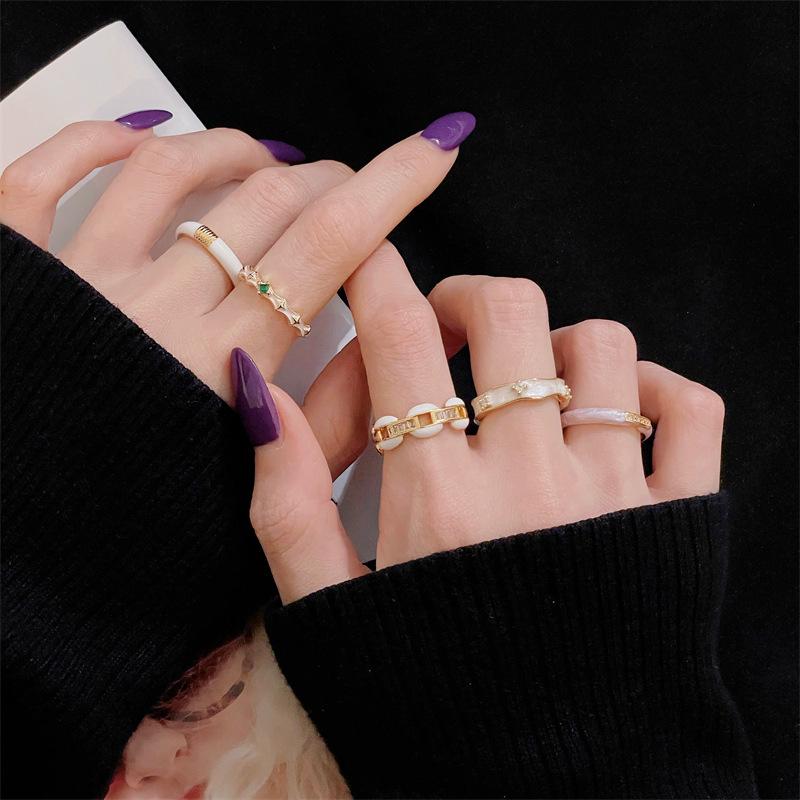 Enamel Dripping Oil Medium Antique Gold Open Ring Light Luxury High Sense Retro Zircon Jewelry Personalized Accessories Women