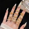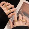 Fashion Gold Emerald Drop Glaze Open Ring Zircon Enamel Personality Light Luxury Premium Retro Ladies Ring