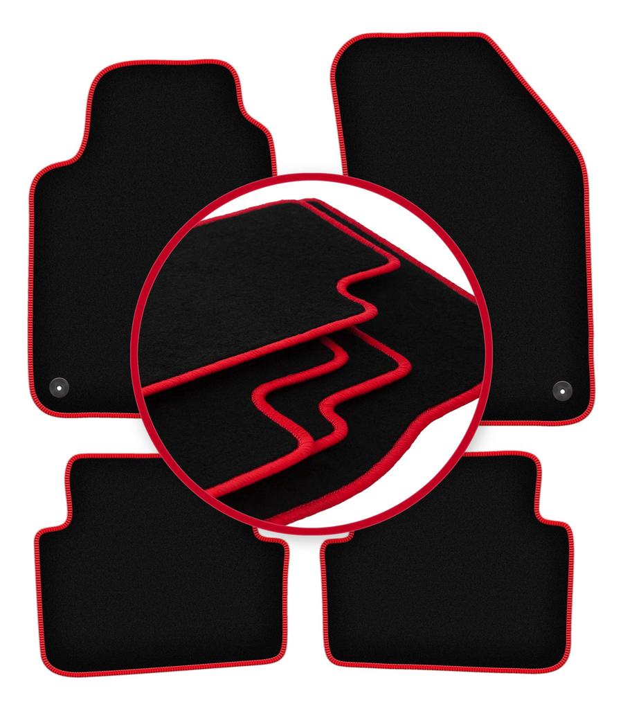 Velour floor mats with red edge for: Renault Laguna II station wagon, liftback (2001-2007)