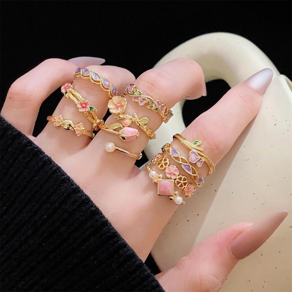 Gold Medieval Enamel Dripping Open Ring Flower Retro Ethnic Color National Style Personalized Luxury Ring