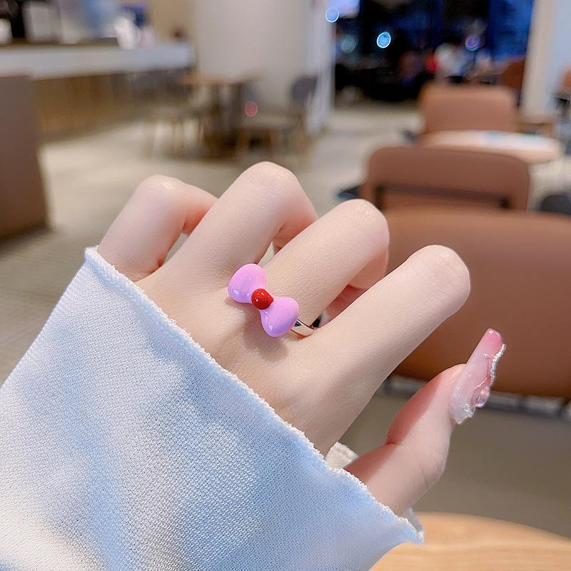 Bow Love Moonstone Open Ring Women'S Niche Design Sense Index Finger Ring Fashion Personality Adjustable Ring