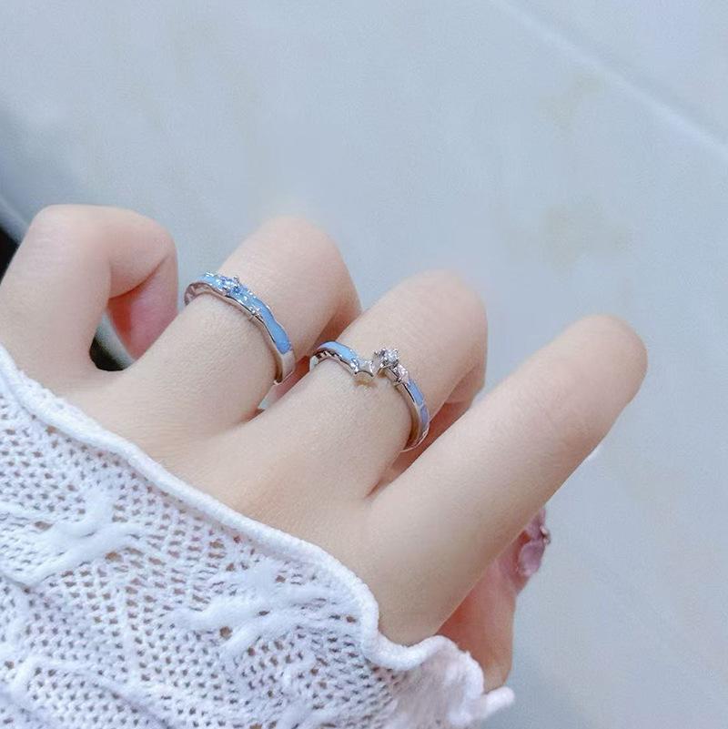 Ice Blue Starry Galaxy Enamel Dripping Oil Opening Ring Women'S Niche Design High-End Sense Unique Temperament Personalized Ring