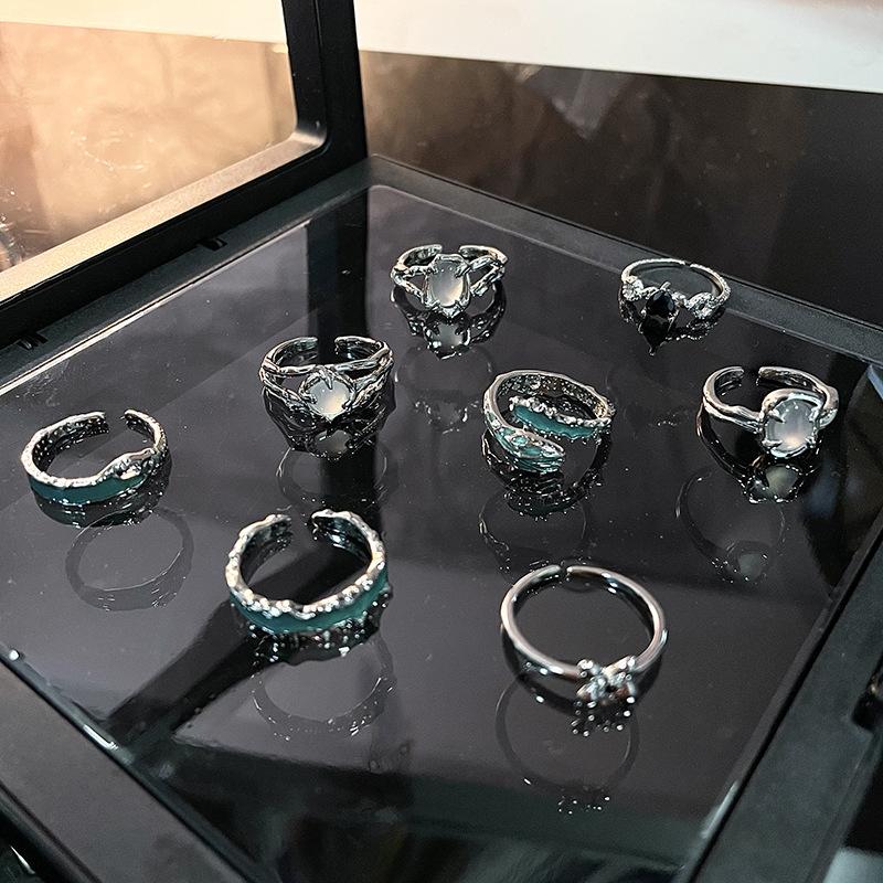 Niche Design Moonstone Cold Wind Dark Personality Gemstone Open Ring Advanced Sense Index Finger Ring Female