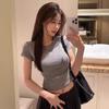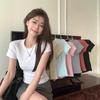 Elevate your wardrobe with this elegant women's slim-fit white short-sleeve base T-shirt, perfect for the spring and autumn seasons. Crafted from a luxurious artificial silk material, this T-shirt offers the soft, comfortable feel of milk silk against the skin. It features a classic round neckline and short sleeves, making it a versatile and timeless piece for any outfit. Whether you're dressing up or down, this Korean-inspired T-shirt is a chic and effortless choice for any fashion-forward woman.