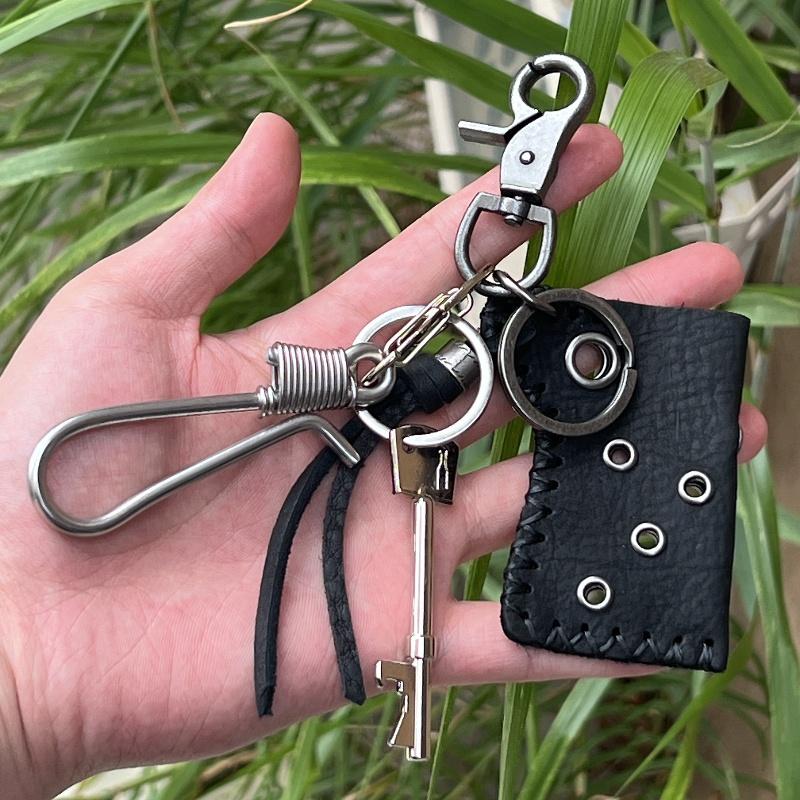 Accesorios de Moda Originales Llavero de Cuero Genuino Decoración para Cinturón de Jeans Colgante Metálico para Mochila Latón Acero Inoxidable