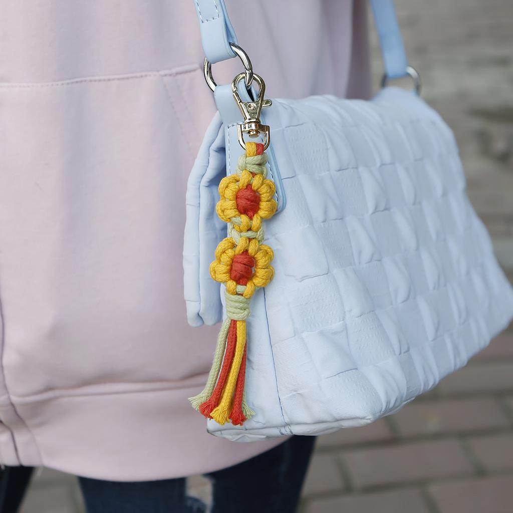 Bohemian Daisy Flower Keychain Hand Woven Wrist Strap Bag Phone Pendant Hanging Rope Decorative Accessories Ornament Gifts