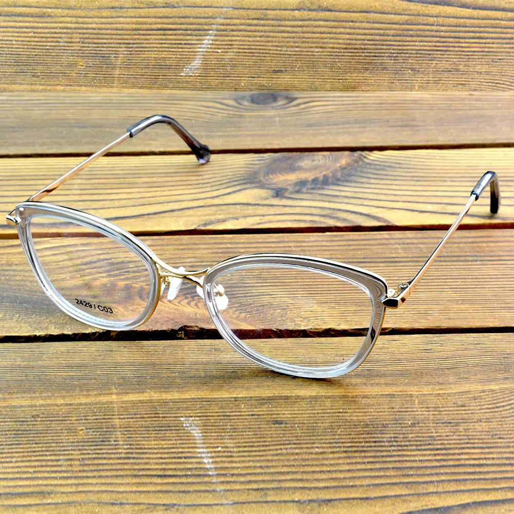 Transparent Cat-Eye Titanium Optical Glasses Frame – Lightweight Metal Eyewear with Elegant Gold Accents for Women