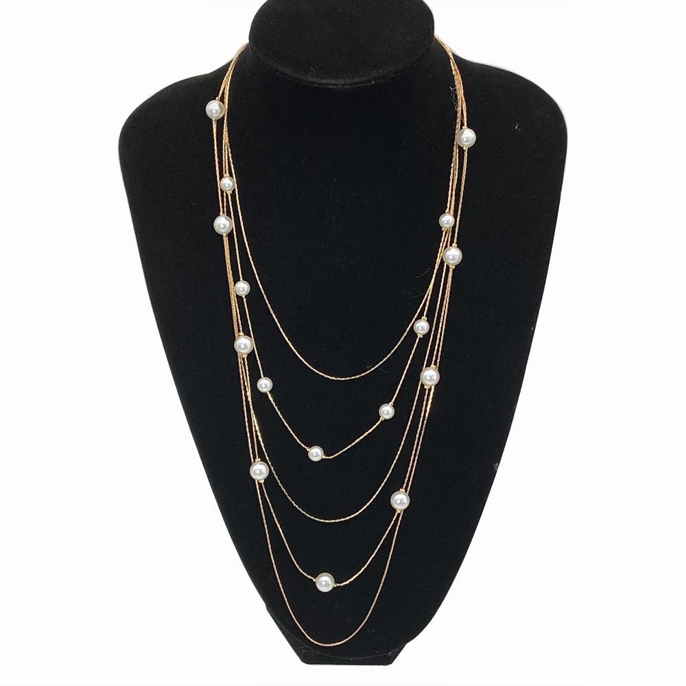 Autumn and winter simple solid color imitation pearl necklace high-end snake bone chain warm color sweater chain women's collarbone chain