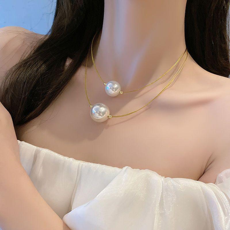 French retro pearl necklace women's one big high-end temperament summer collarbone chain neck chain accessories tide