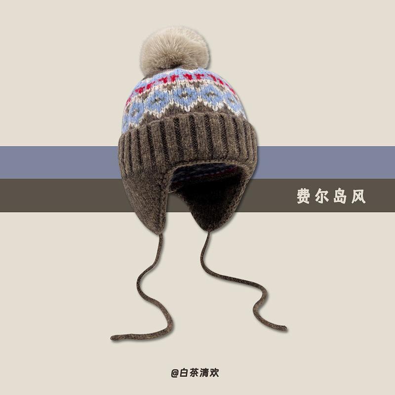 Fair Island wind jacquard ball wool hat women's new casual versatile student ear protection Lei Feng hat