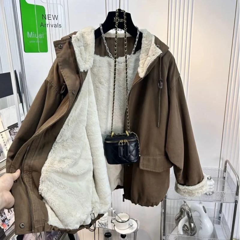 Coats for Women Winter Cotton Oversize Jacket Hooded Thickened Velvet Windbreaker Loose Casual Coat Top