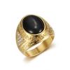Anillo para Hombre de Acero de Titanio con Hip Hop Europeo-Americano Chapado en Oro y Piedra Ojo de Gato con Pedrería