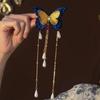 Chinese Style Embroidered Blue Butterfly Hairpin Pearl Tassel Hair Accessory Hanfu Hairpin Headwear Decoration