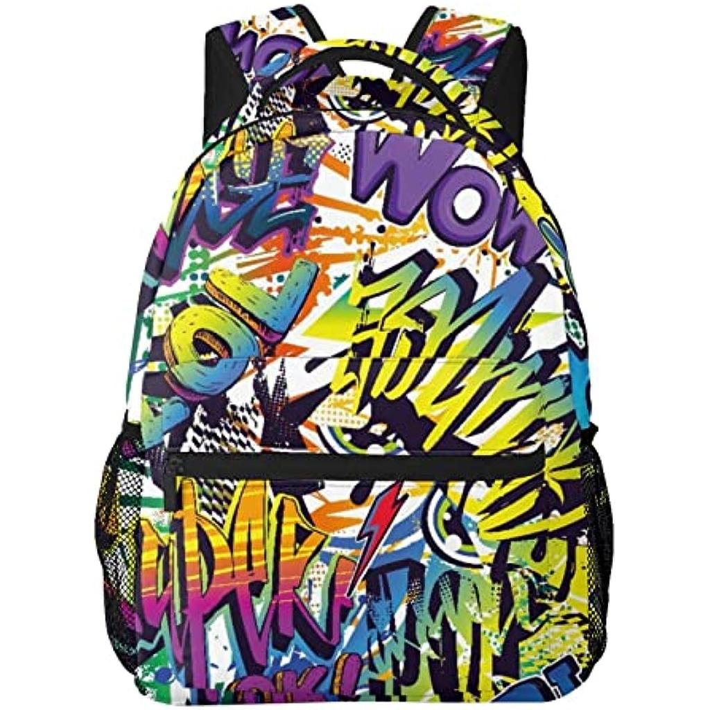 Mochila Multiusos para Ocio con Estampado de Cómics Abstractos y Texto Estilo Graffiti Urbano Yo Pop Super Grunge Wow Mochila de Viaje Deportiva Escolar