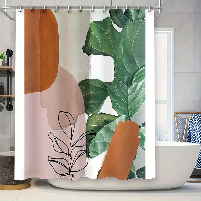 Botanical Shower Curtain Tropical Leaves Pattern Bathroom Decor Nature Greenery Backdrop Waterproof Modern Farmhouse Style Home
