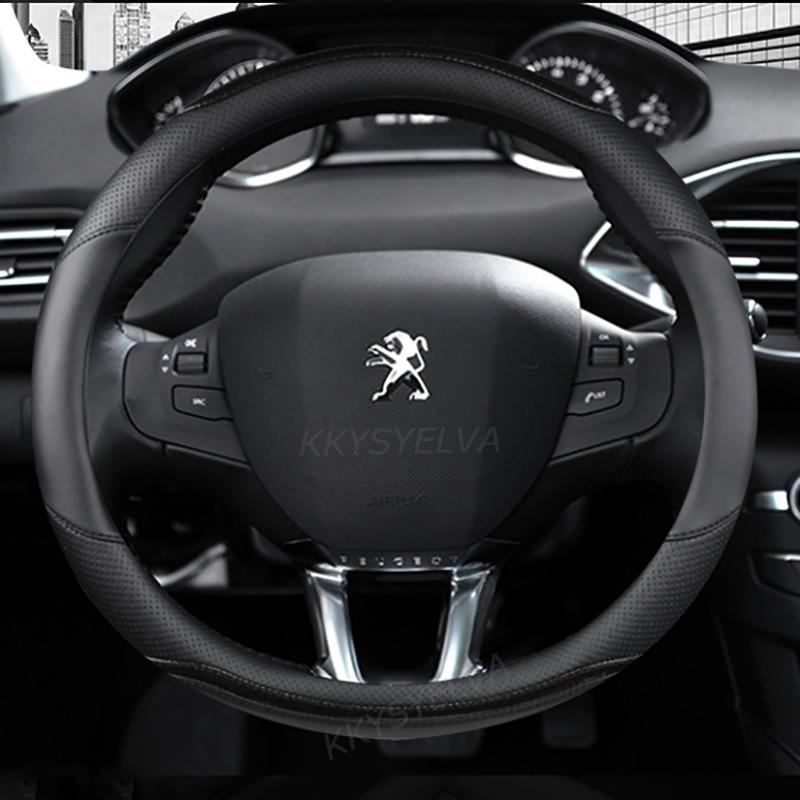 Protector para volante de coche de fibra de carbono + cuero para Peugeot 208 2012 ~ 2018 Peugeot 308 2014 ~ 2008 2013 ~ 2018 accesorios para automóviles