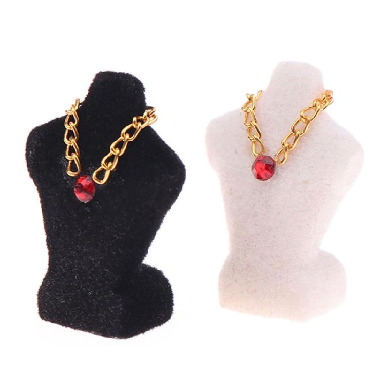Realistic Miniature Doll House Jewelry Stand Model With Flocking Finish and Necklace for 1/24 Antique Cabinet Decors