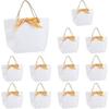 SUPERFINDINGS 12 Juegos Bolsas de Regalo Blancas Bolsas de Regalo Medianas con Asas Bolsas para Recuerdos de Fiesta con Cinta de Lazo Dorada Bolsas de Papel al por Mayor Para Fiesta Boda Cumpleaños