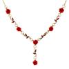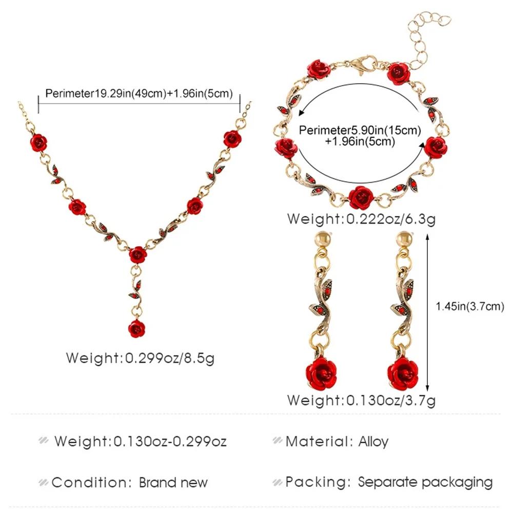 Vintage Red Rose Flower Necklace Bracelet Earring Jewelry Set for Women Tassel Earring Clavicle Chain Wedding Engagement Jewelry