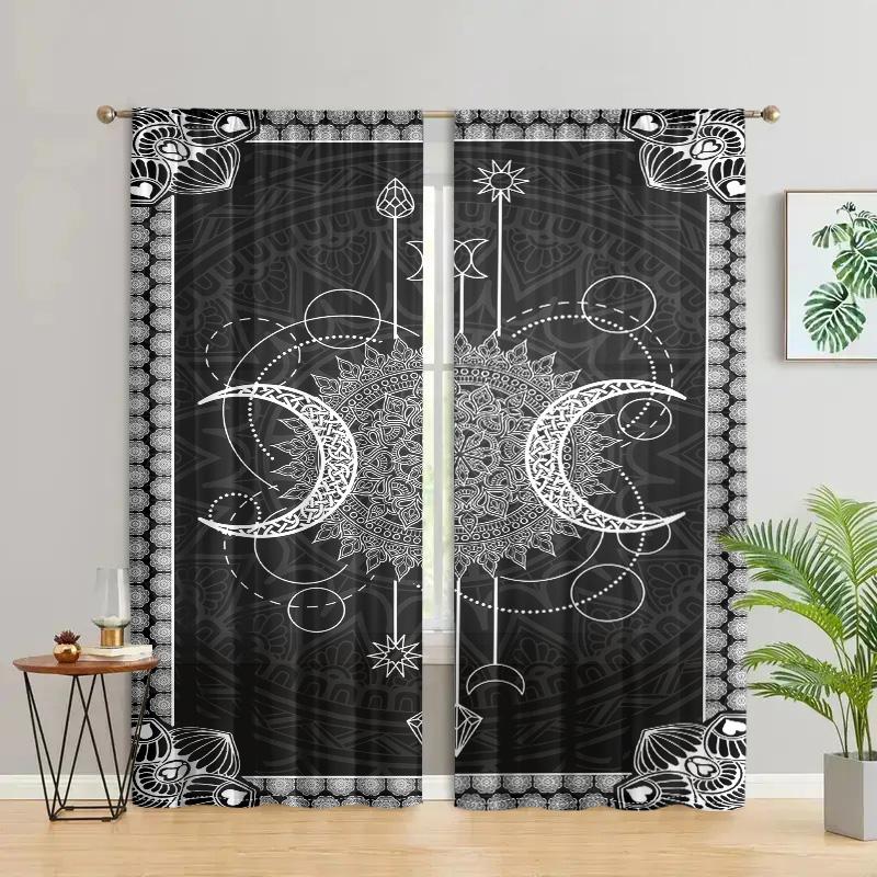 2 Pieces, Sun and Moon Mandala Semi Transparent Curtains - Rod Pockets - Living Room, Bedroom and Other Home Decorations