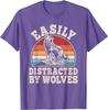 Easily Distracted By Wolves Retro Graphic T-Shirt Vintage Sunset Wolf Howling Print Casual Cotton Tee