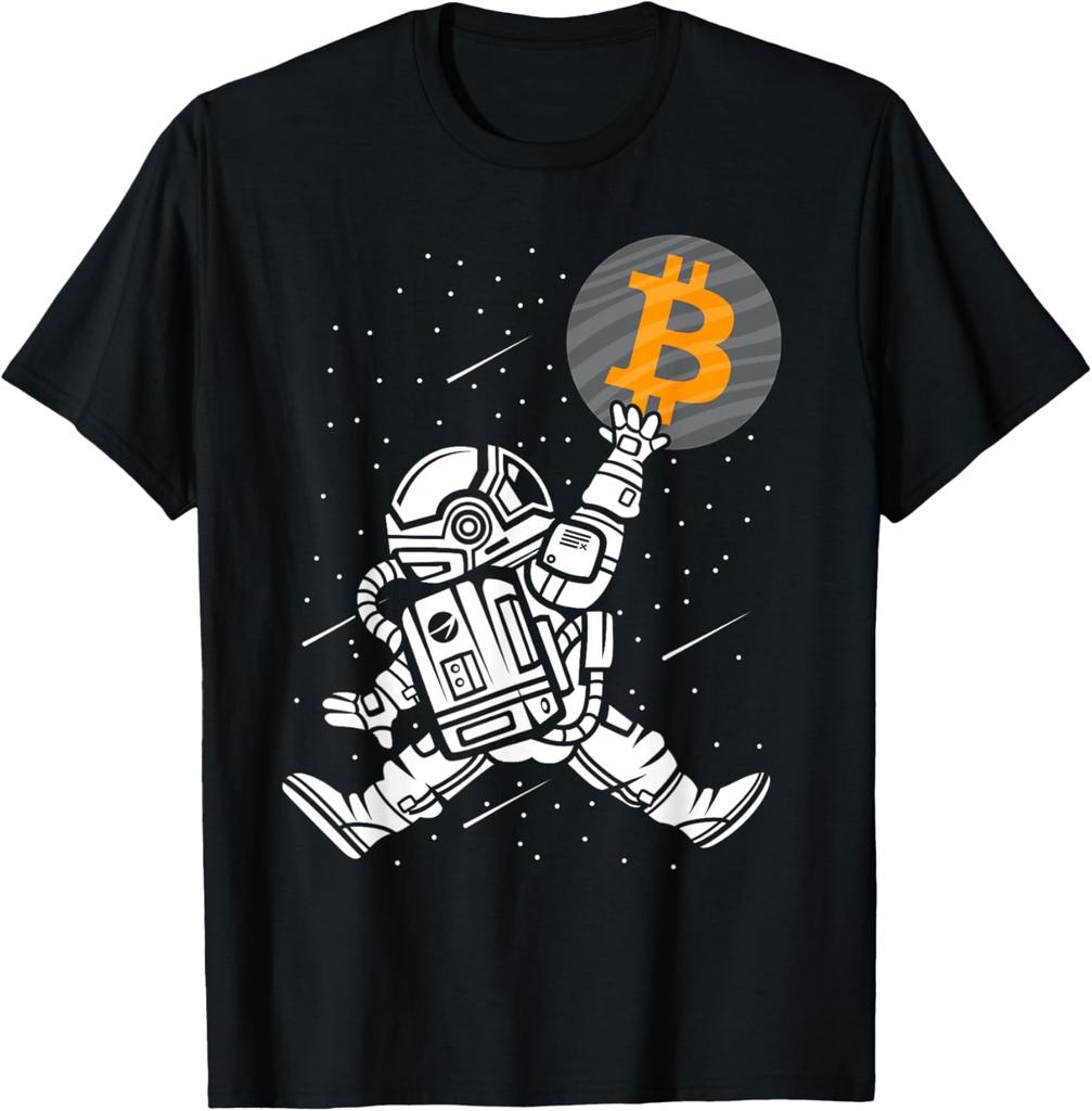 Bitcoin Astronaut Reaching for BTC Crypto Trader Graphic Tee Men Casual Short Sleeve