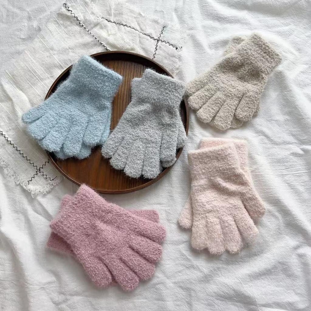Simple and Solid Color Winter Outdoor Warm Five Fingered Soft and Glutinous Cold Proof Gloves for Boys and Girls