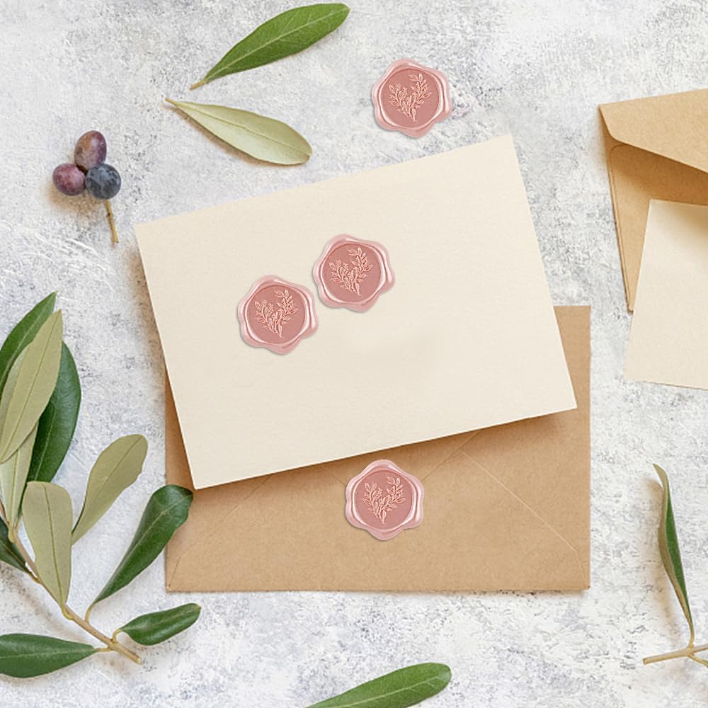 100Pcs Eucalyptus Wax Seal Stickers,Pink Self Adhesive Botanical Envelope Seal Stickers,Great for Gift Wrapping,Wedding Invitation,Greeting