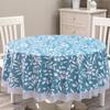 Pastoral Style PVC Tablecloth Lace Hem Oil Resistant Waterproof Tablecloth Flower Pattern Printed Design Round Table Cover