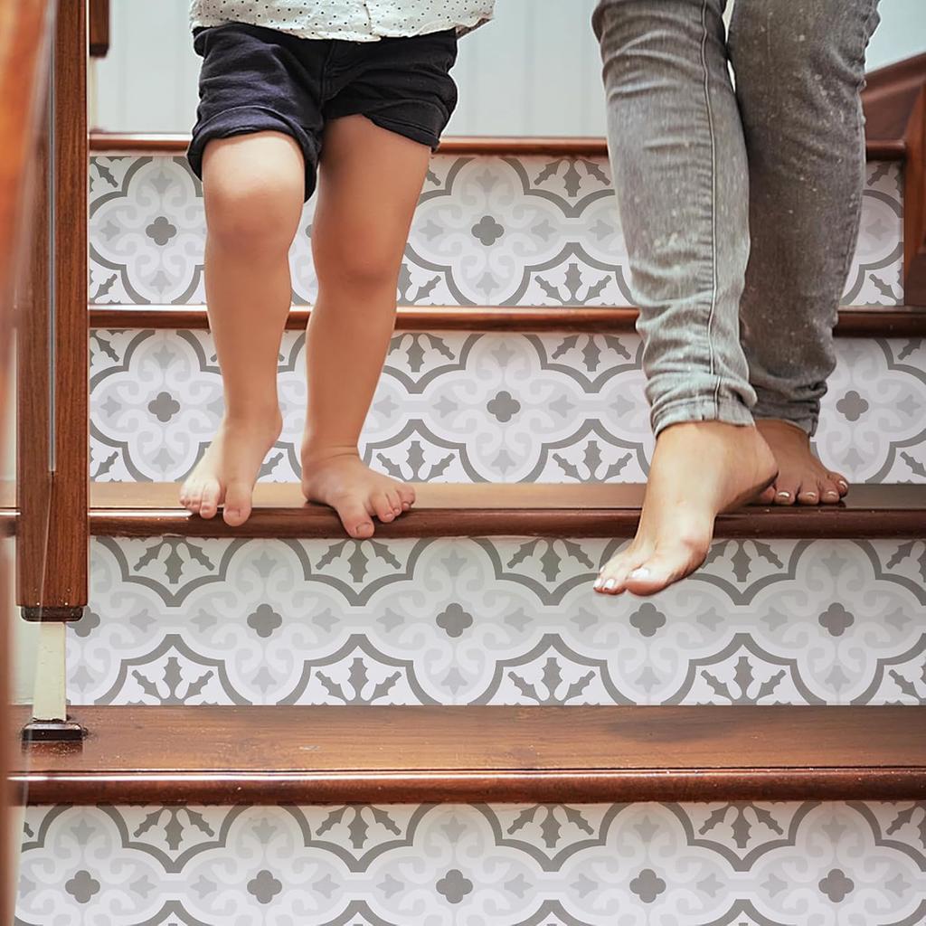 14 Strips Stair Riser Stickers, 39'' x 7'' Peel and Stick Vinyl Stair Stickers Decals, Self Adhesive Staircase Murals Decor for Steps (Moroccan)
