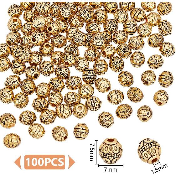 UNICRAFTALE About 100Pcs Tibetan Barrel Beads 7mm Antique Gold Beads Rondelle Spacer Beads with Large Hole Beading Bracelet Making Beads for Bracelet