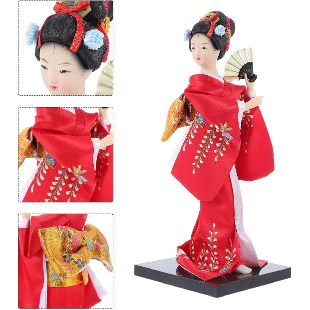 FAVOMOTO Japanese Doll Ornament: Handmade Geisha Figurine with Silk Kimono - Geisha Doll Collectible Japanese Cultural for Women & Home Aesthetics